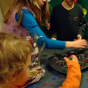 - When frozen – place a baking sheet in the sink to catch any runaway wreaths, turn the bundt pan upside down or on its side to expose the bottom of the pan, and run the bottom of the pan under hot water for just a second or two to loosen the ice wreaths and remove the wreaths