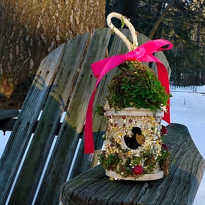 This is a great craft for kids, teens, and adults. It’s also the perfect gift for bird lovers. If you love nature like I do, and crafting with the birds in mind, then check out my post on making a pinecone birdfeeder . If you are making birdfeeders for winter, then you’ll love these Birdfeeder Ice Wreaths