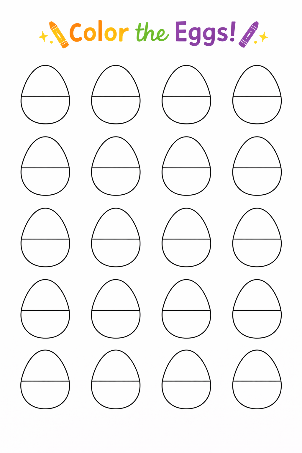This bonus printable includes blank split eggs (with a horizontal line dividing the top and bottom). Students color the eggs themselves โ€” then use them to build custom matching strips.